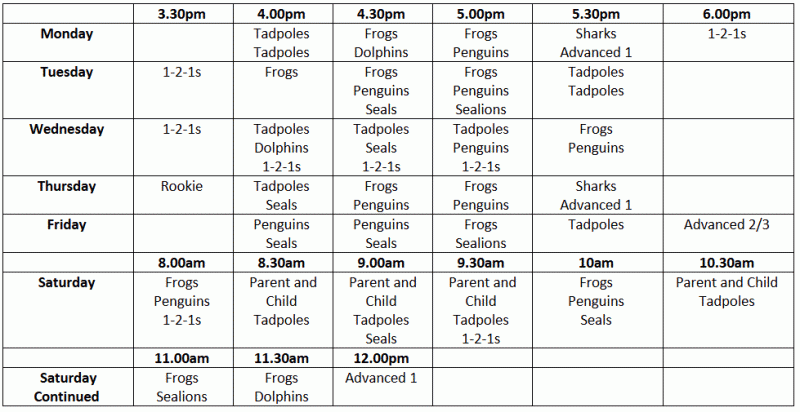We run a full timetable of lessons for children aged 2-16, with classes from Parent & Child through to Advanced swimming for stamina. If you would like to add your child to our swimming lesson waiting list please click the link below and complete the form.